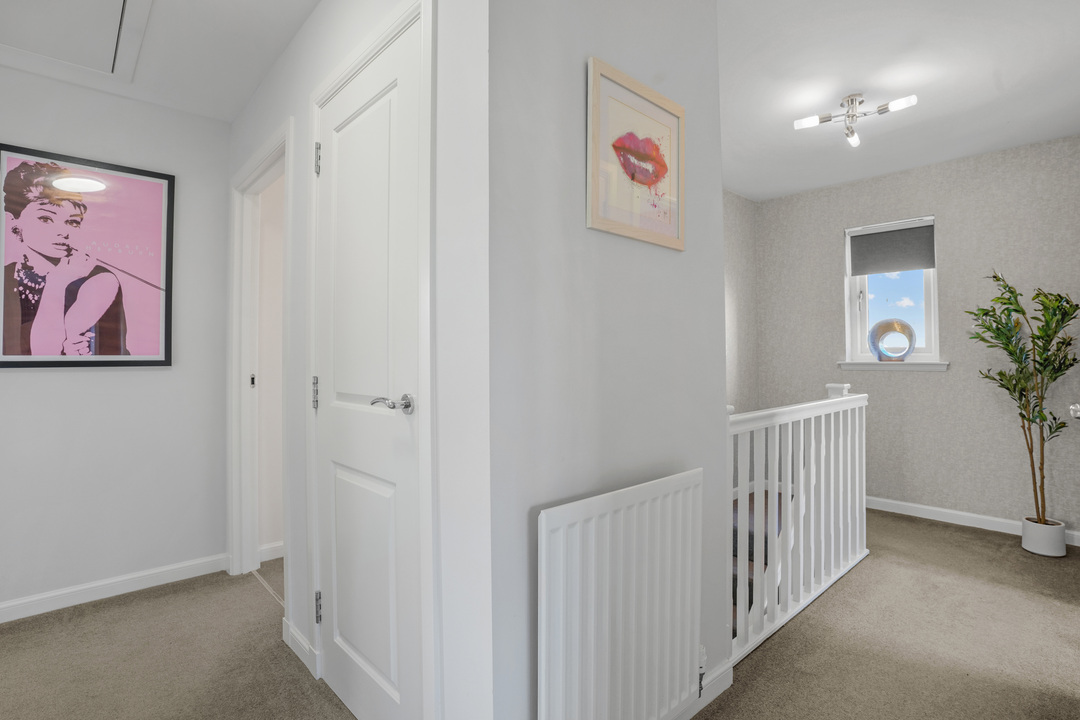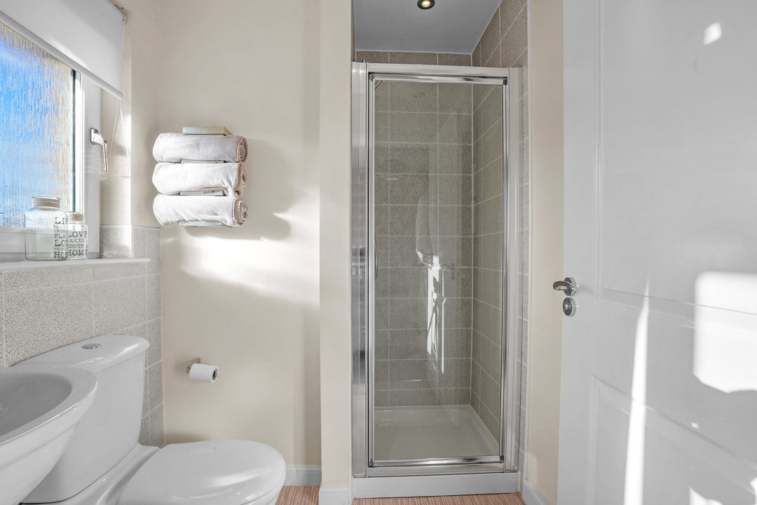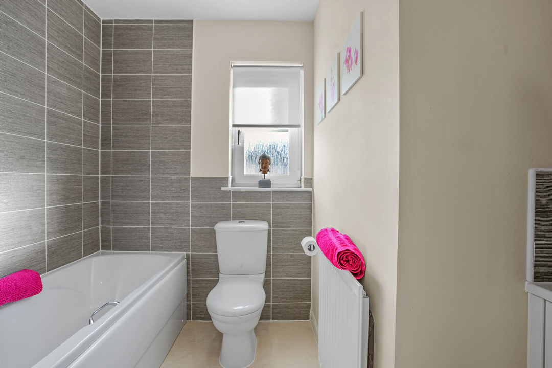 The family bathroom is generous in size and includes a large storage cupboard, which could easily be adapted into a walk-in shower if desired.
