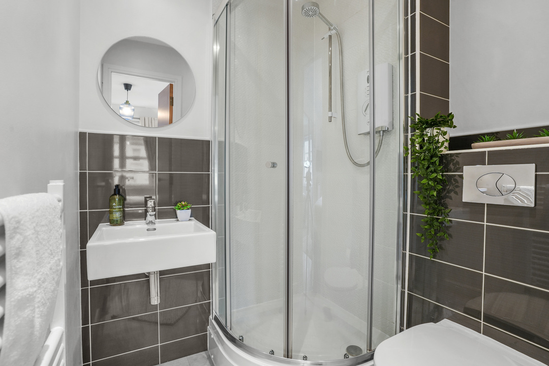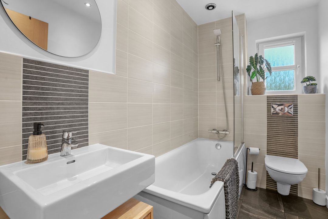 • Family Bathroom – modern, fresh, and well-proportioned.